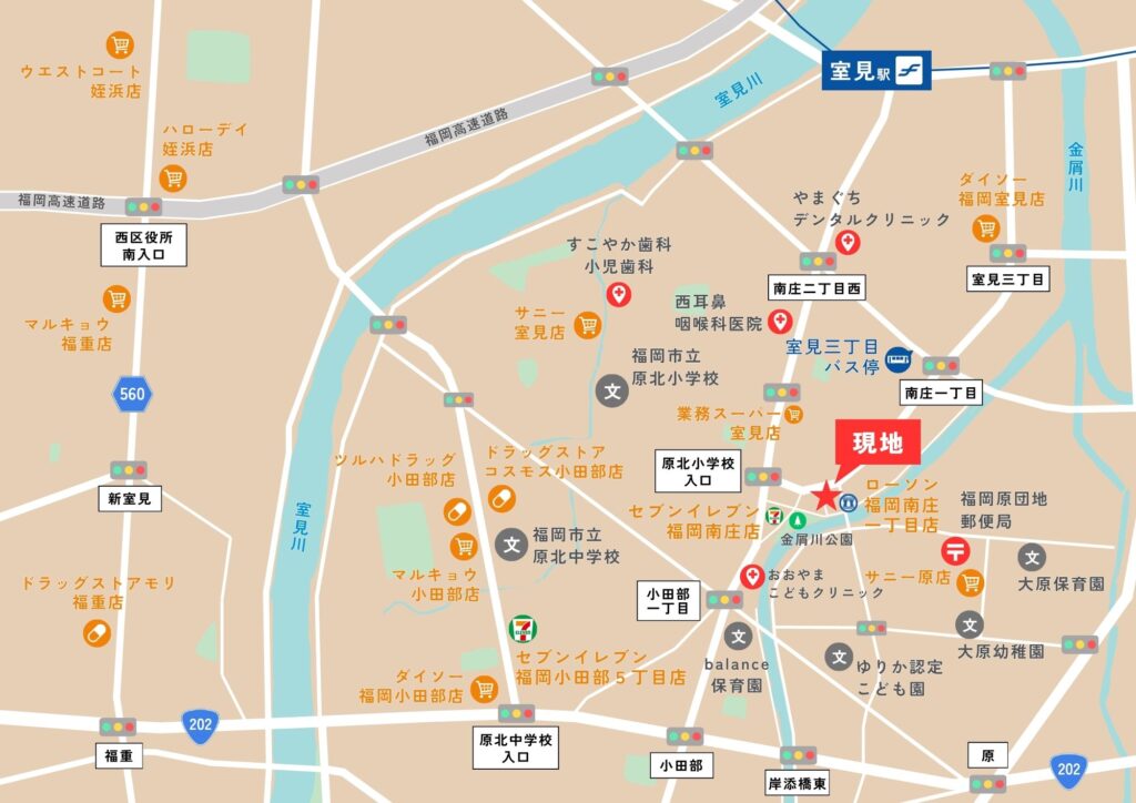 地下鉄空港線「室見」駅まで徒歩13分。