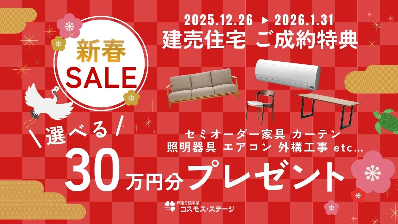 ご成約の方に、選べる30万相当の家具やカーテン費用のプレゼント企画です。