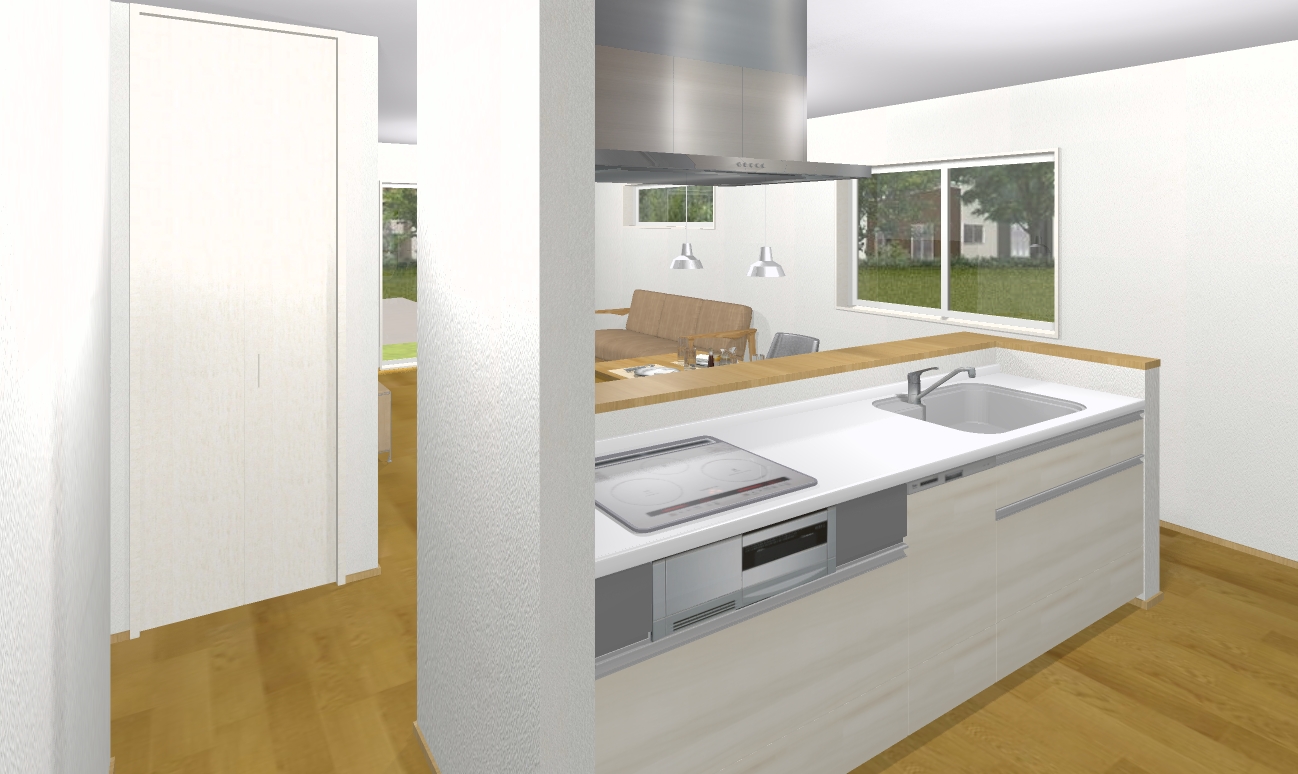 コスモスオリジナル「イエシュノ」は、収納を効率よく配置し、家事の効率化を図れる商品です。いつも整理整頓ができ空間を綺麗に保てます。家事の効率化を図り、家族時間を増やしてほしい。そんな思いから誕生しました。今回注目のポイントはずばり!ランドリールーム!洗って隣のブースで干せる家事楽動線です。またフミリークロークも1階にあるので、2階へのアクセスを減らせます。キッチン部は回遊できるアイランド型で、広々空間で閉鎖感もなく、ぐるぐる回れるので家事動線ばっちりです。LDKはゆとりの広さで、老後は間仕切1部屋できる広さを確保しています。断熱等級6相当は注文住宅並みのハイスペック仕様でエネルギーの削減と快適な空間を提供します。
