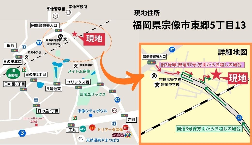 お車でお越しの方宗像市東郷5丁目13‐15