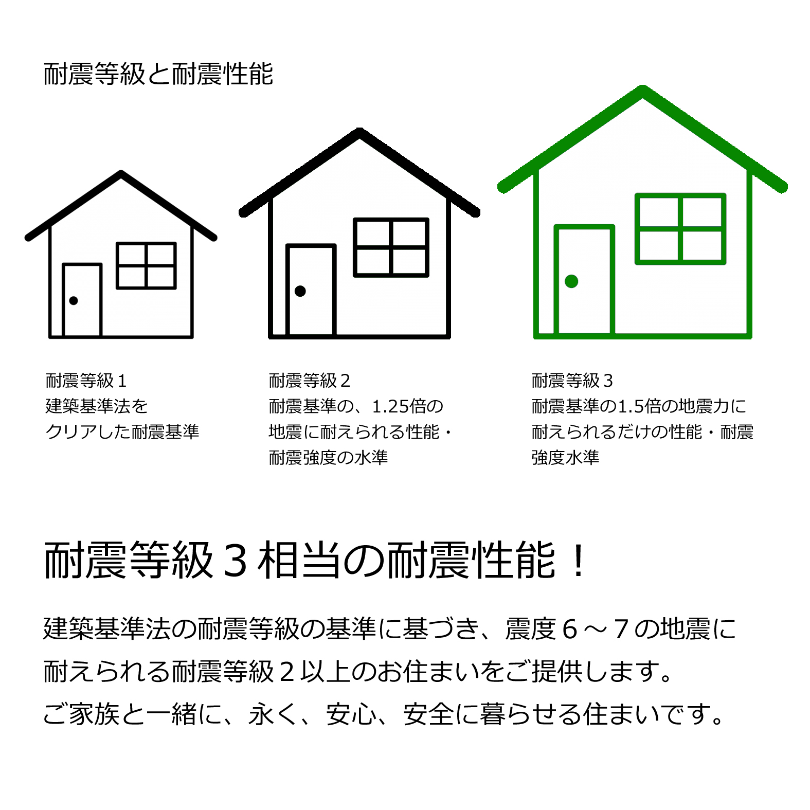 耐震等級3相当の家作りで、地震から身を守ります。