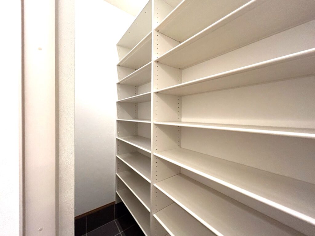 大容量のシューズクローク。靴以外でも趣味の道具等様々な物が置けます。